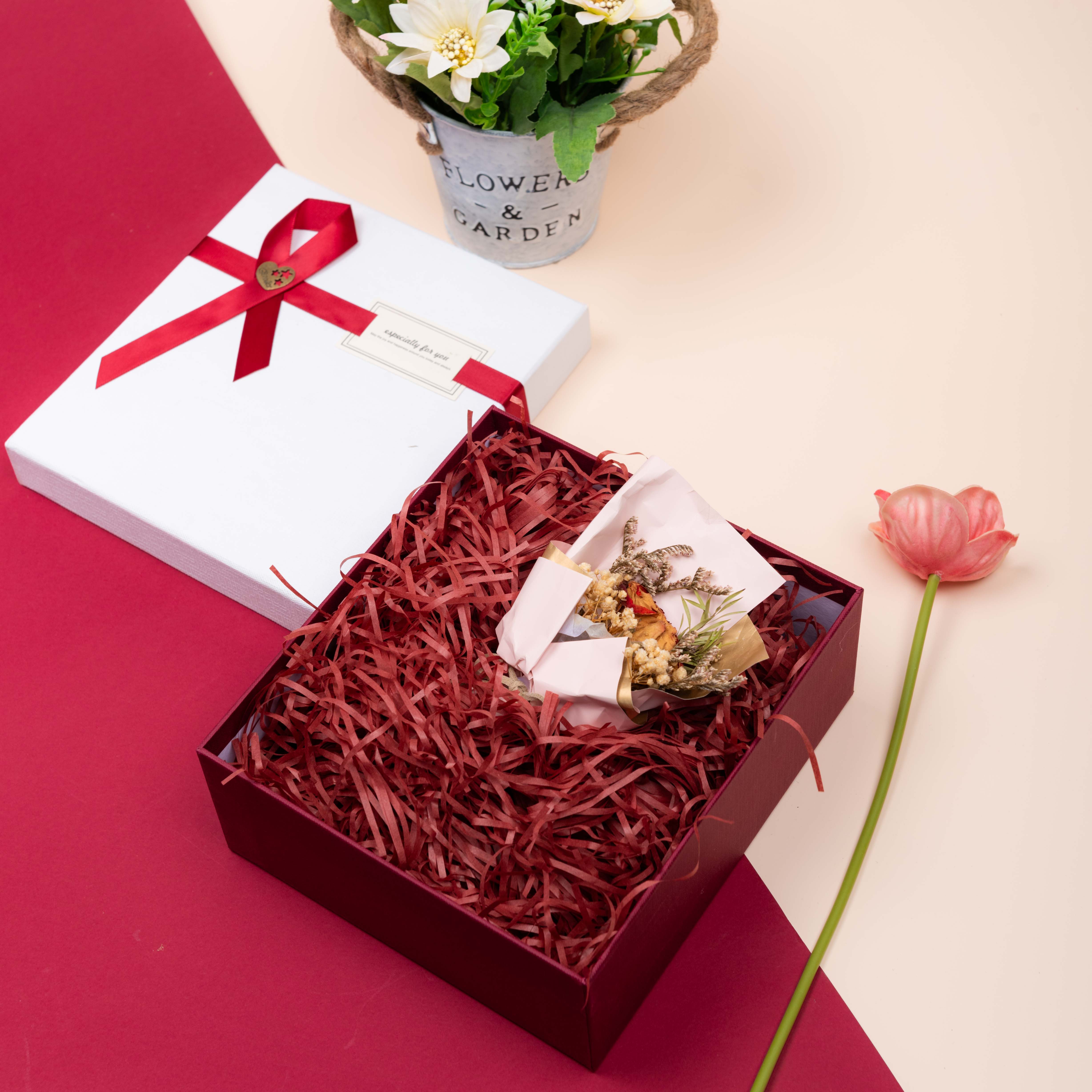 Bên cạnh hộp quà, vật dụng trang trí như ribbon, hoa, hay thiệp cũng quan trọng. Chúng tạo nên sự hoàn thiện cho gói quà và làm tăng giá trị thẩm mỹ của nó.